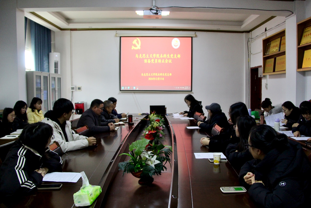 本网讯(通讯员 钟洁)2024年12月13日下午,马克思主义学院本科生党支部于院会议室召开预备党员转正会议。马克思主义学院党委副书记张旺、院党建组织员宋政余、本科生党支部书记袁梓翔出席本次会议,本科生党支部全体成员线上线下参会。本科生党支部党务助理贾烺主持本次会议。