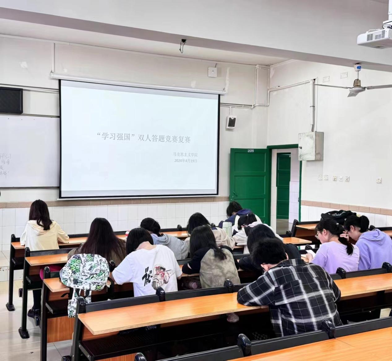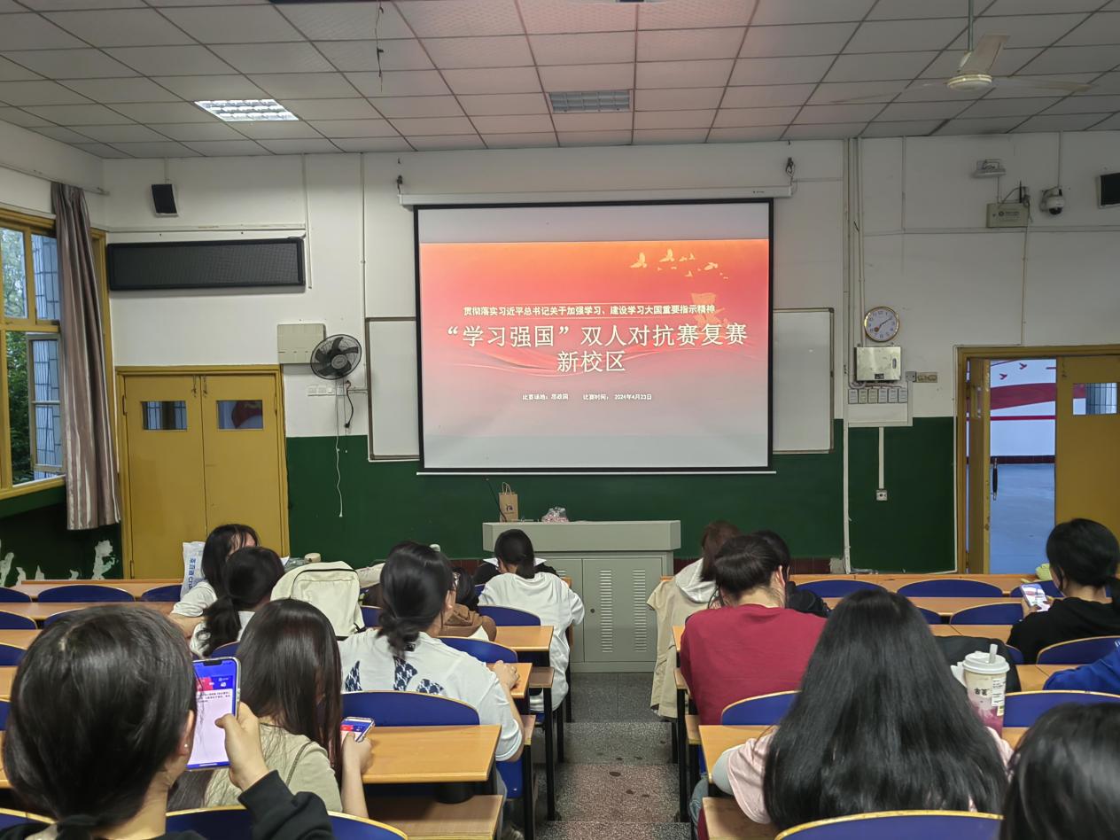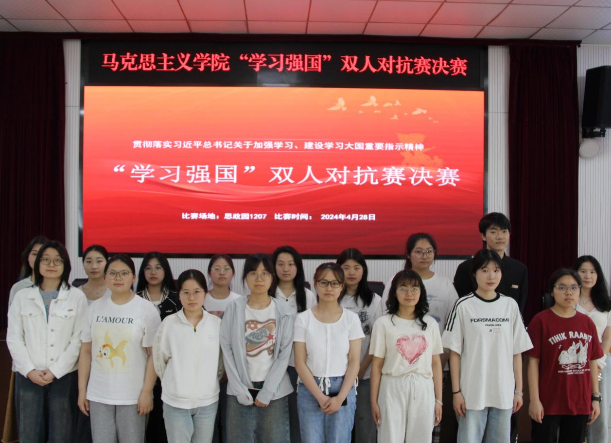 本网讯(通讯员 唐雅婷)为深入学习贯彻习近平新时代中国特色社会主义思想,进一步激发同学们的学习热情,增强学习实效,2024年4月27日下午,马克思主义学院于思政园1207举行“学习强国”双人对战答题竞赛决赛,本次比赛由安奕波同学主持,学院12名同学进入决赛。