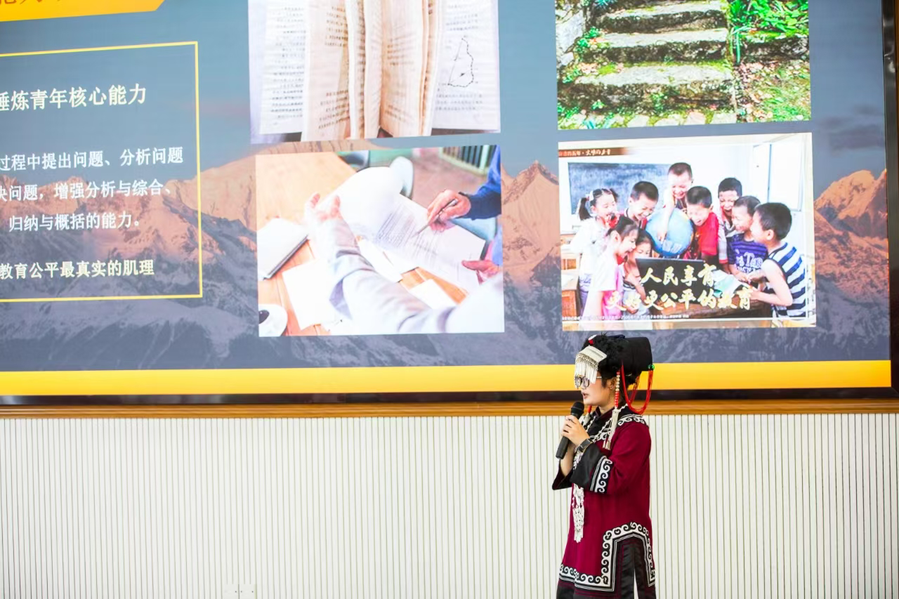 5月22日,本次竞赛决赛(本科组)在湘南学院举行。来自全省本科高校的17支顶尖参赛队伍齐聚一堂,围绕学习、贯彻和研究习近平新时代中国特色社会主义思想这一重大主题各展风采。吉首大学马克思主义学院的唐祥云等五位同学在决赛中表现尤为出色,她们以清晰的逻辑、详实的资料、生动的语言和多样的形式,对民族地区基础教育中“云支教”的青年融入问题进行了全面深入的剖析,并提出了兼具创新性和可操作性的建议,赢得了评委们的高度认可,最终斩获一等奖。