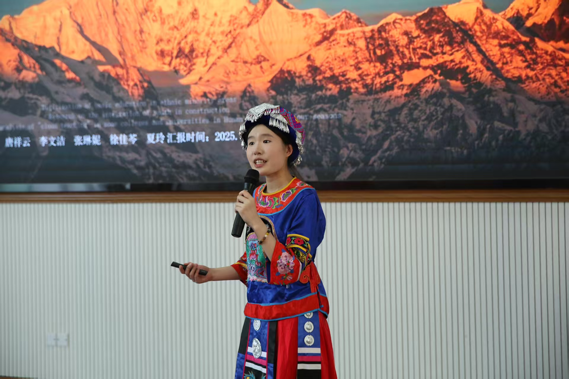 本网讯(通讯员 钟洁)近日,从湖南省第十一届大学生学习贯彻习近平新时代中国特色社会主义思想暨思想政治理论课研究性学习成果展示竞赛决赛传来喜讯,吉首大学马克思主义学院再创佳绩。由学院学科带头人肖映胜指导,思想政治教育专业2022级唐祥云、李文洁、张琳妮、徐佳苓、夏玲五位同学组成的团队,凭借研究成果《民族地区基础教育中“云支教”的青年融入研究——基于吉首大学近四年的实证分析》,在竞赛中脱颖而出,荣获本科组一等奖。