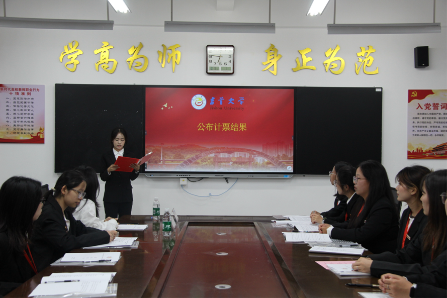 学院学工办主任袁梓翔宣读了大会选举办法,并公布了总监票人、总计票人、监票人和计票人名单。经过紧张有序的投票、计票环节,大会成功选举产生了新一届学生会主席团成员,分别为:安奕波、潘柯伊、陈奕霖。随后选举产生了代表学院出席吉首大学第二十四次学生大会的人选,分别为:全豆、王佳怡、王佳佳、吴静岳、潘柯伊。