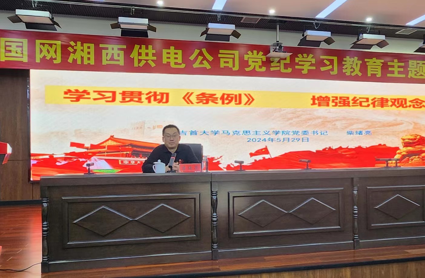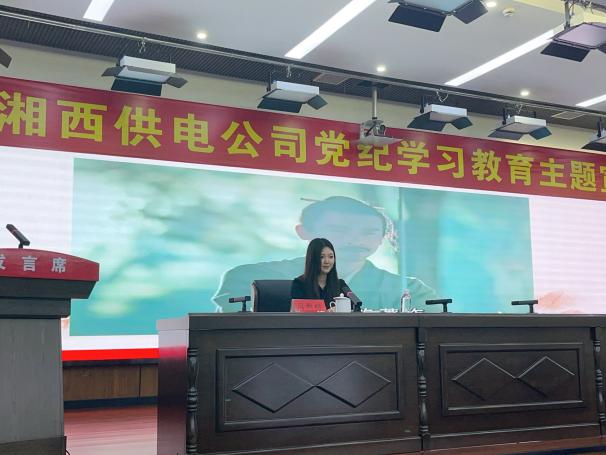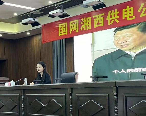 本网讯(通讯员 王丹)为深入贯彻落实党纪学习教育,推进党的创新理论融入湘西州国有企业各项工作,5月29日下午,马克思主义学院“星火”宣讲队在国网湘西供电公司开展了理论宣讲活动。国网湘西供电公司副总经理顾海军及本部各支部书记及党员代表参活动。马克思主义学院党委书记柴绪亮率领“星火”宣讲二分队的部分成员进行宣讲。活动由硕士研究生王丹主持。
