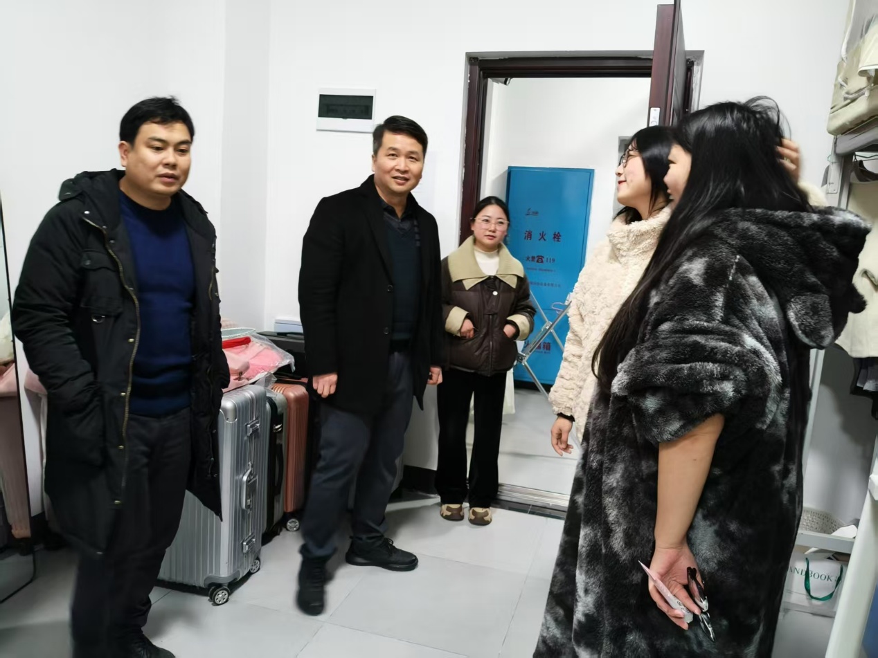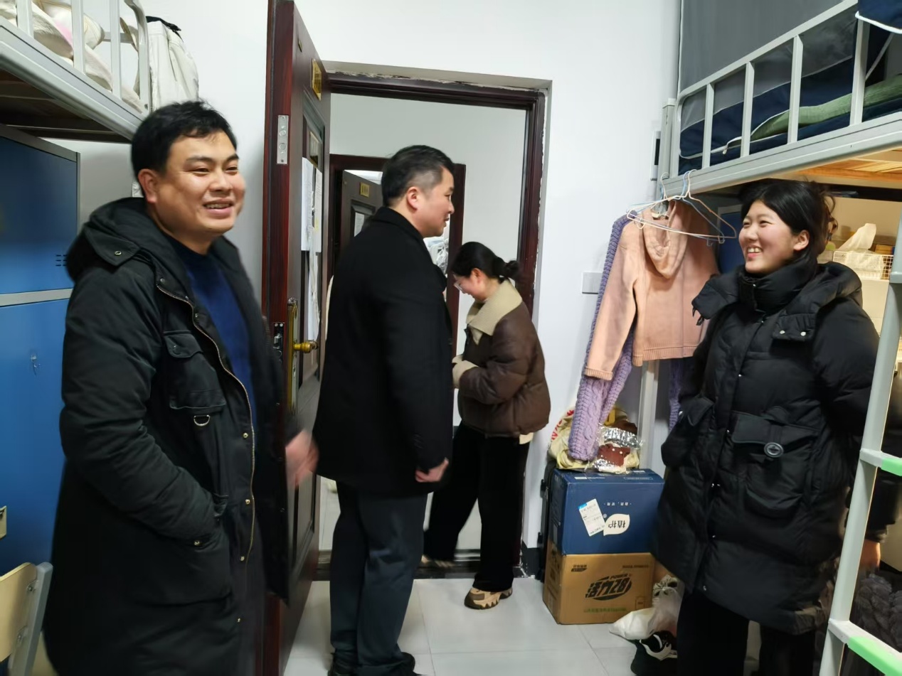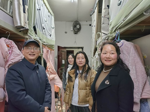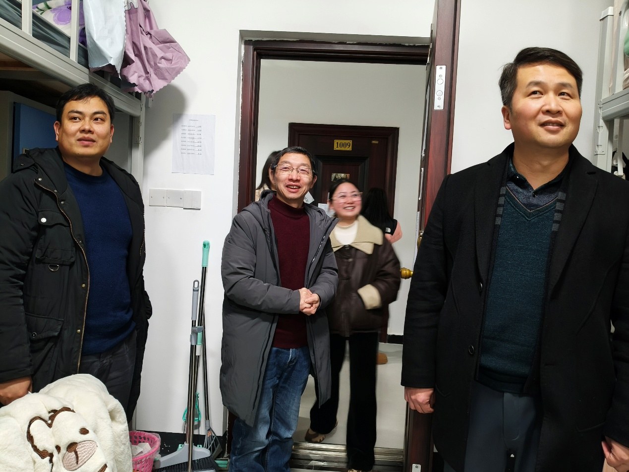本网讯(通讯员 廖肖珠 朱莹婷)2025年2月23日晚,马克思主义学院党委书记廖浩,副院长曾文、副院长刘因灿,团委书记王晋,辅导员袁梓翔及各班班主任深入研究生和本科生寝室,为同学们送去新学期的关怀与问候。