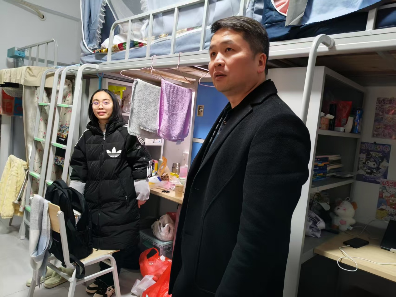 在走访过程中,老师们全方位关心同学们的学习、生活和身心状态。学院党委书记廖浩、副院长刘因灿及辅导员袁梓翔对同学们的生活状况关怀备至,仔细排查是否有同学未返校,关心同学们的人身安全,认真查看宿舍卫生情况,温馨提醒大家保持良好生活习惯,注重寝室环境卫生,对物品摆放杂乱的宿舍,耐心引导同学及时整理。