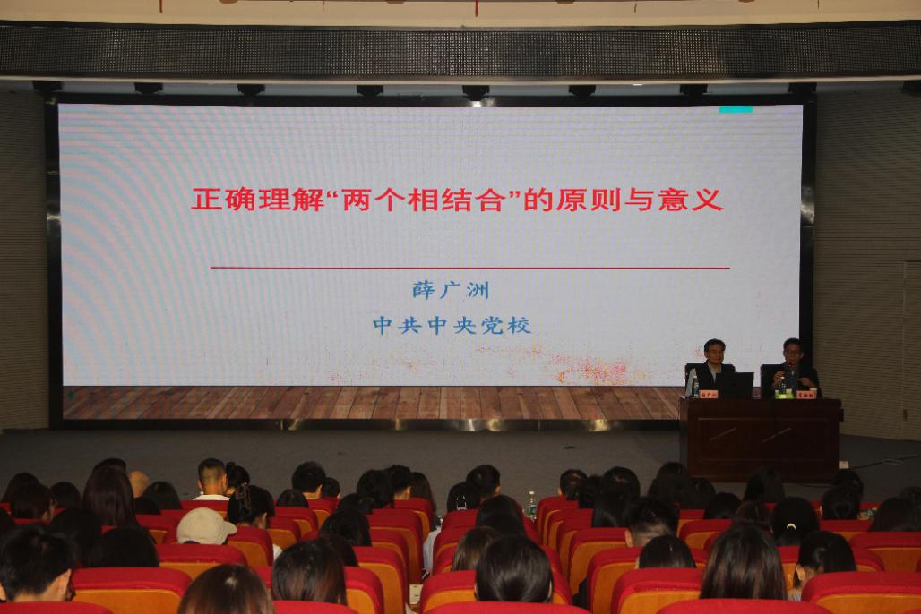 (通讯员 李毛锦) 10月13日晚上,中共中央党校博士生导师薛广洲教授应邀来校举办了一场题为“正确理解‘两个结合’的原则与意义”的学术讲座。讲座在吉首大学雷公井校区大礼堂举行,吉首大学马克思主义学院肖映胜教授主持。