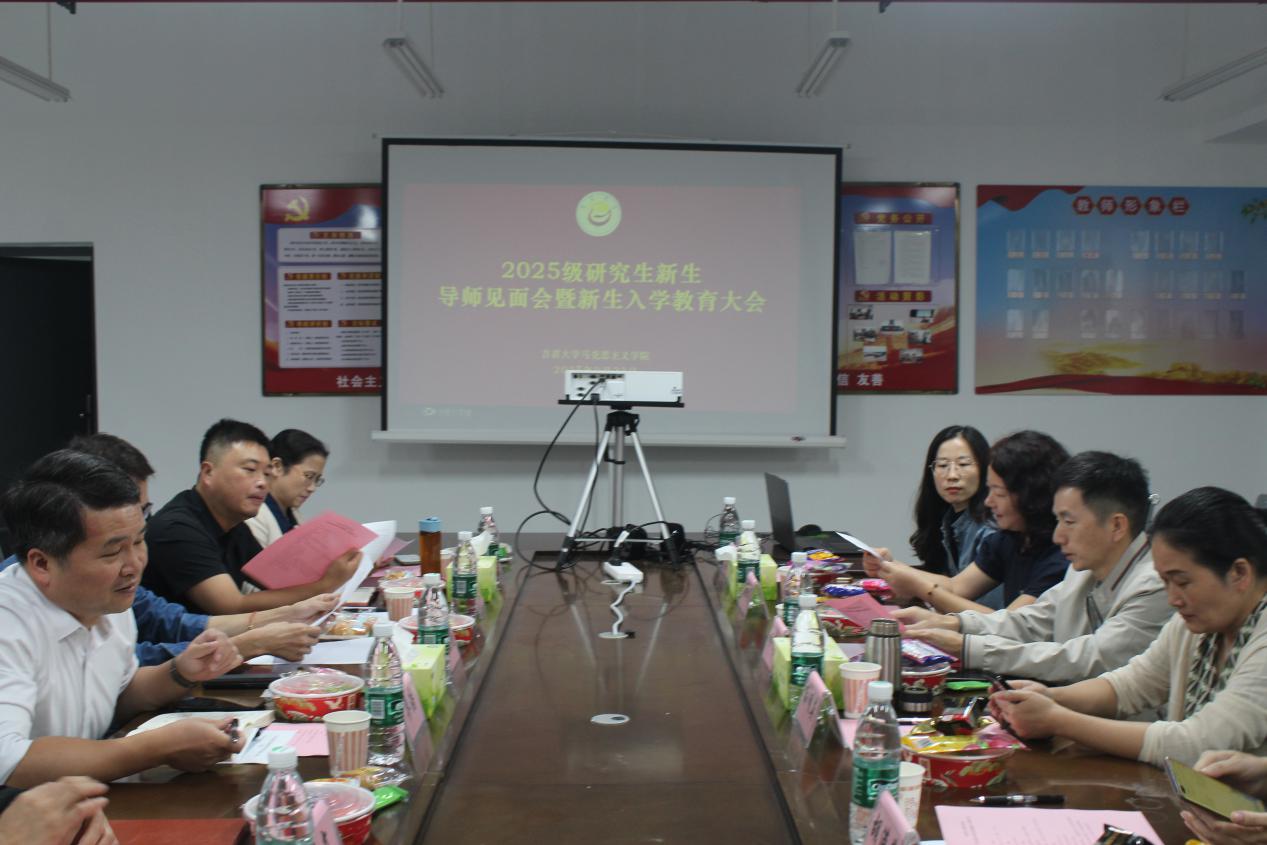 (通讯员 徐专)9月23日下午,马克思主义学院在身正楼203会议室召开2025级研究生新生导师见面会暨研究生新生入学教育大会。会议旨在搭建导师与新生间的沟通桥梁,帮助新生快速融入研究生阶段的学习与生活,明确学业发展方向,为后续学术研究与成长奠定坚实基础。会议由副院长曾文主持。
