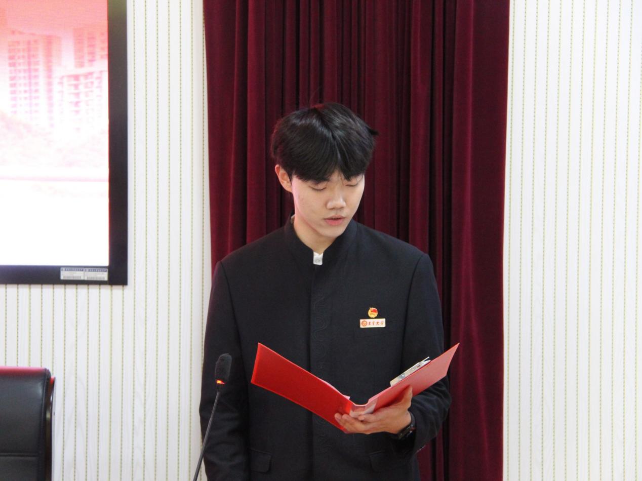 学生代表安奕波在发言中表示将以实际行动搭建民族文化桥梁,牢记“感党恩、听党话、跟党走”的初心,把个人理想融入到民族复兴的伟大征程中,让民族团结之花在校园内外绚丽绽放。